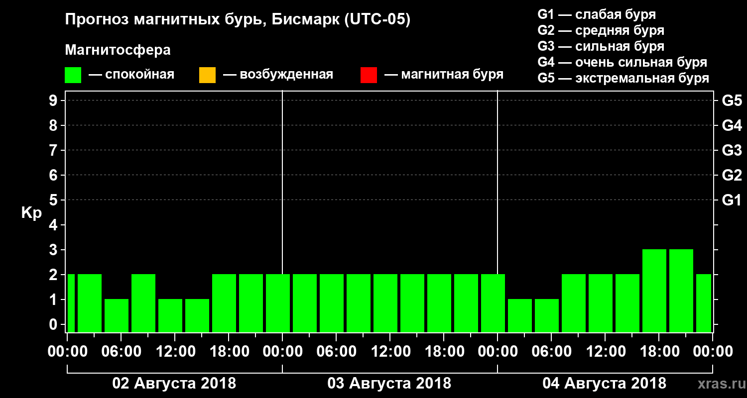 Прогноз магнитных бурь в Бисмарке на 2 августа 2018 года