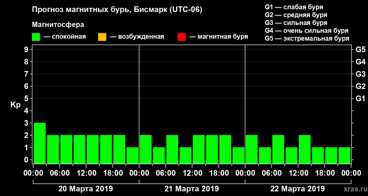 Прогноз магнитных бурь в Бисмарке — 20 марта 2019 года