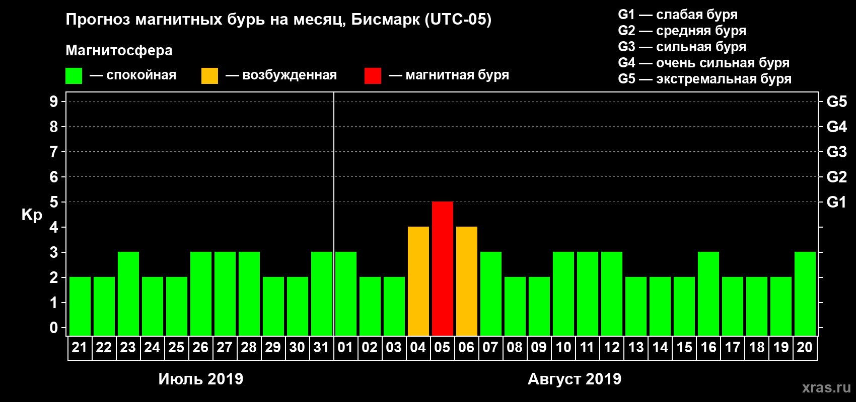 Прогноз магнитных бурь в Бисмарке — 21 июля 2019 года