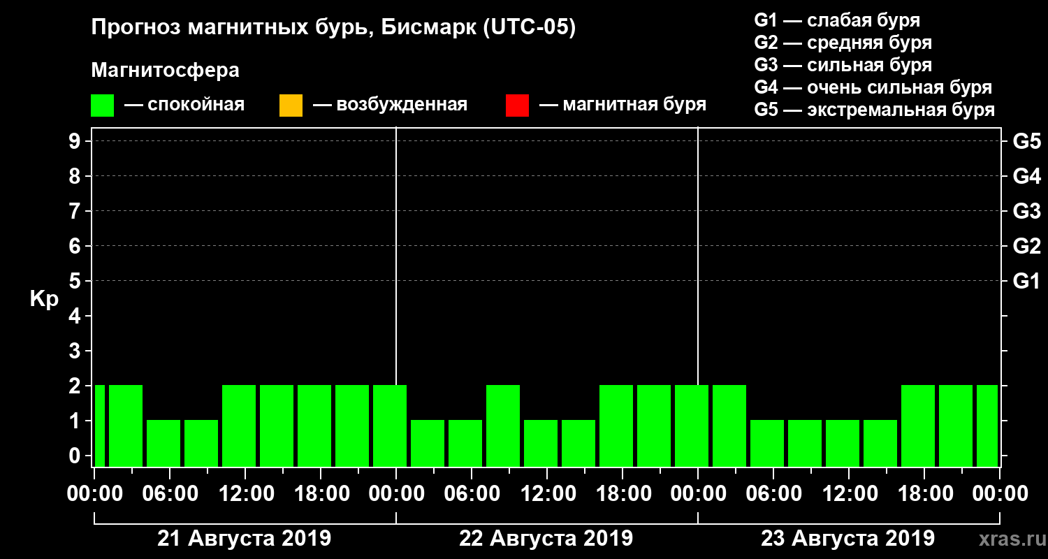Прогноз магнитных бурь в Бисмарке — 21 августа 2019 года