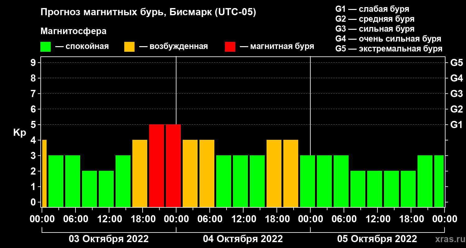 Прогноз магнитных бурь в Бисмарке — 3 октября 2022 года