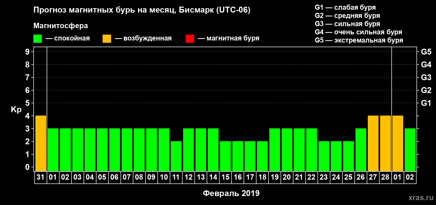 Прогноз магнитных бурь в Бисмарке — 31 января 2019 года