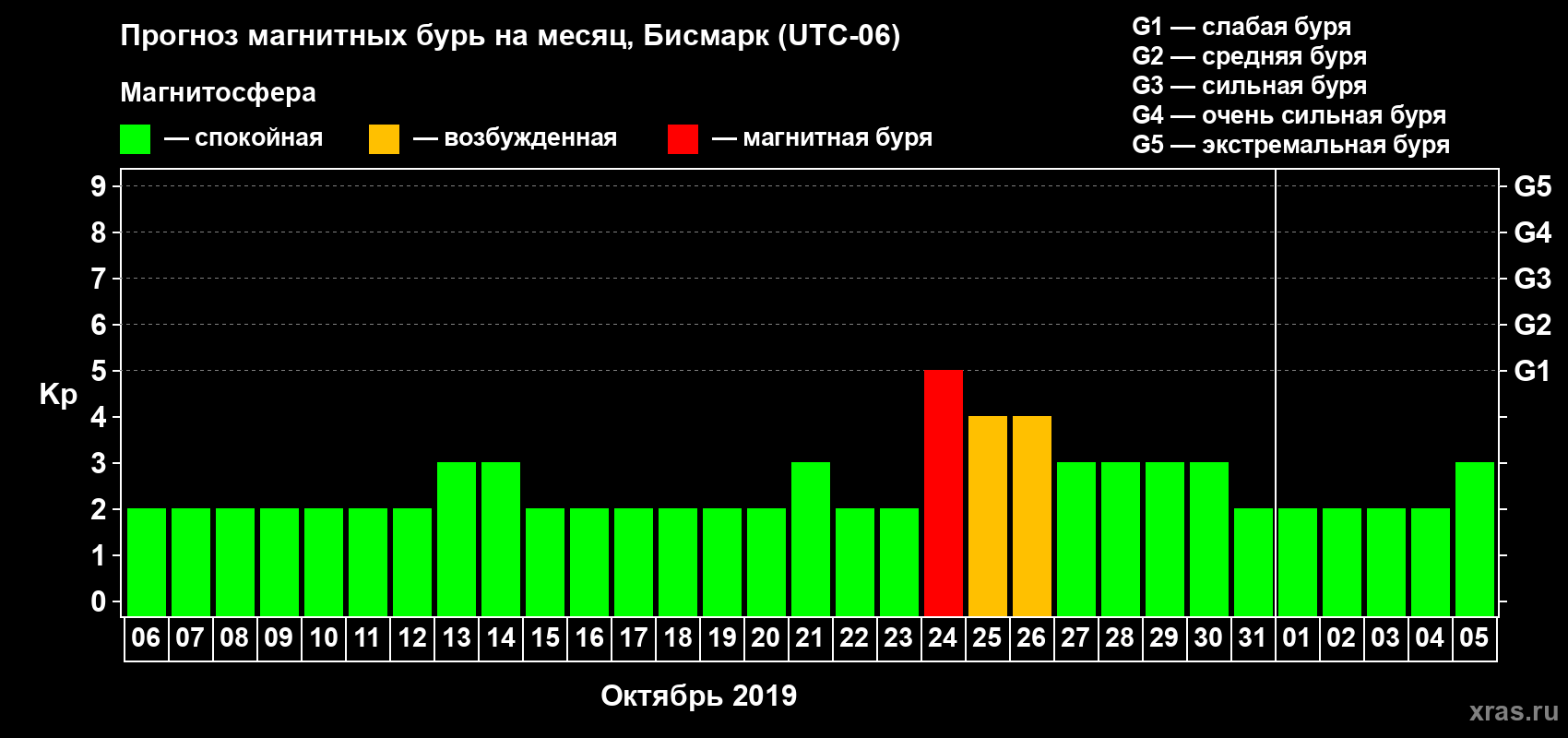 Прогноз магнитных бурь в Бисмарке — 6 октября 2019 года
