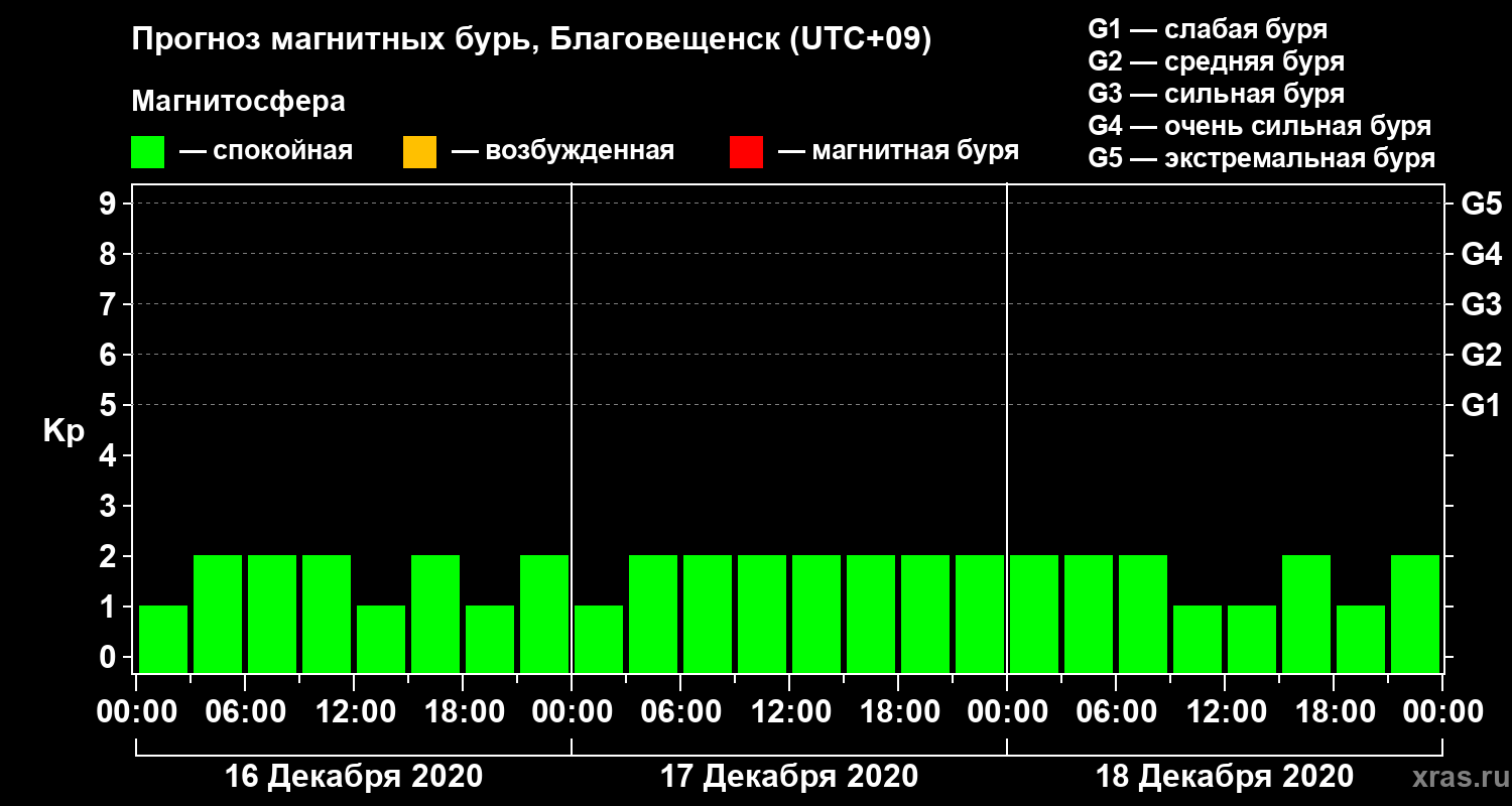 Прогноз магнитных бурь в Благовещенске — 16 декабря 2020 года