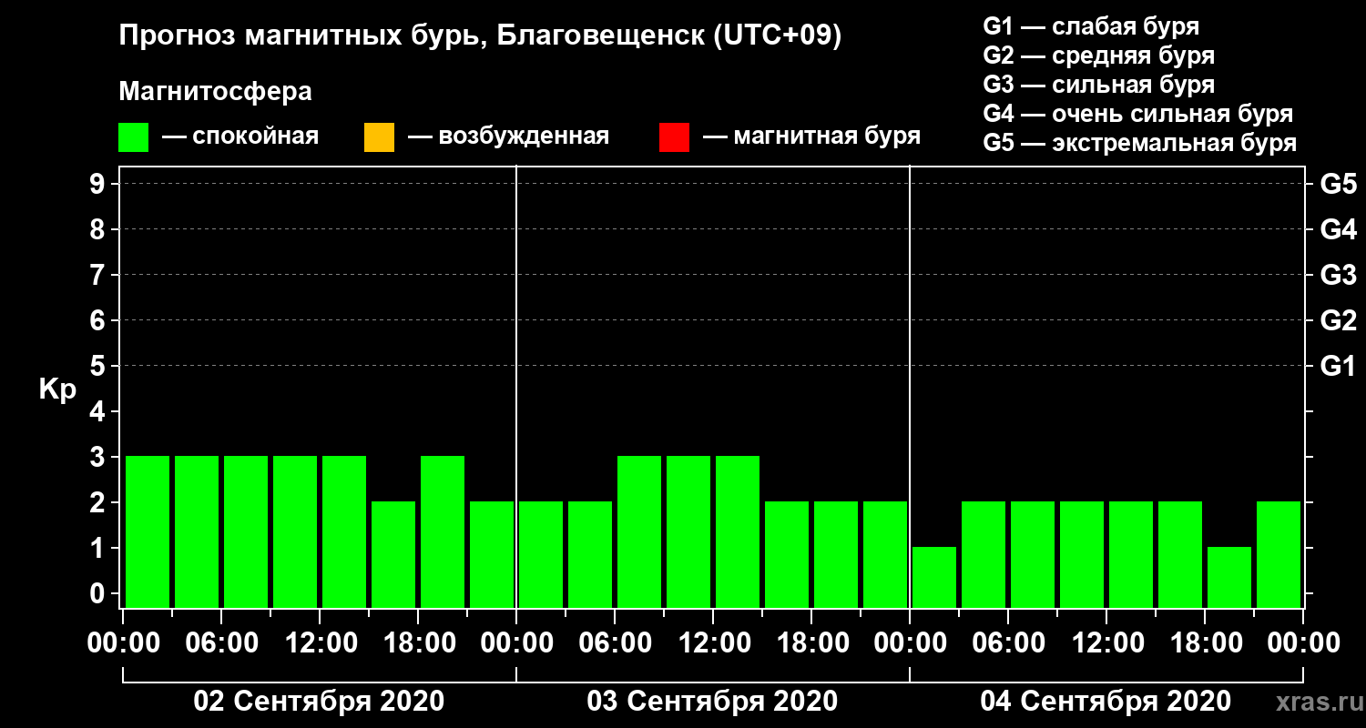 Прогноз магнитных бурь в Благовещенске — 2 сентября 2020 года