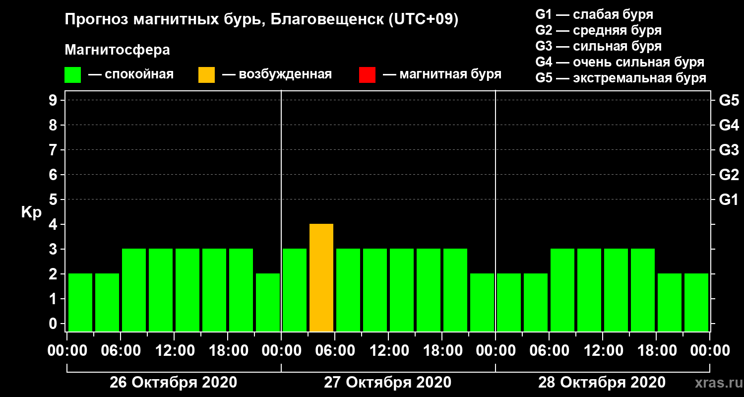 Прогноз магнитных бурь в Благовещенске — 26 октября 2020 года