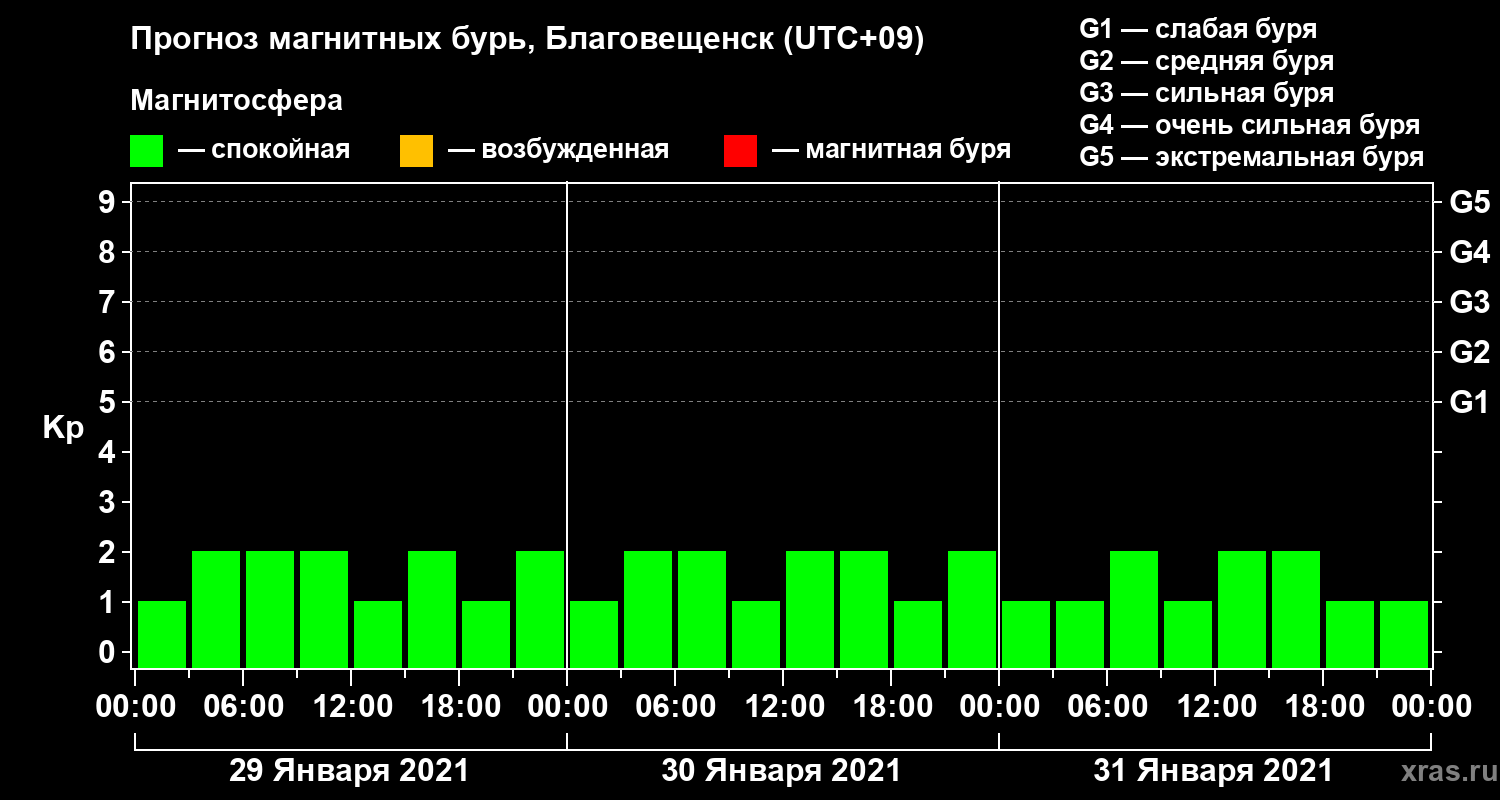 Прогноз магнитных бурь в Благовещенске — 29 января 2021 года