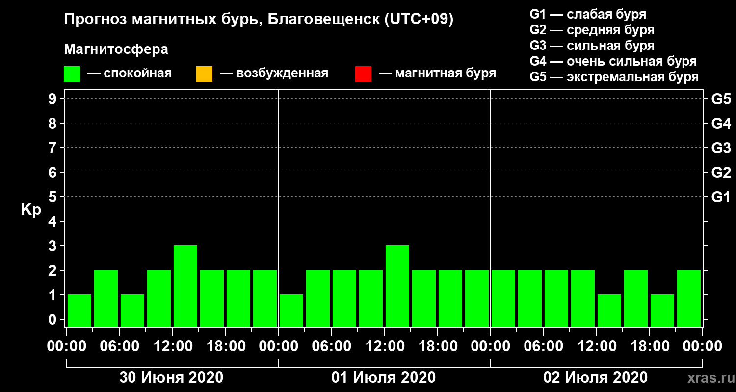 Прогноз магнитных бурь в Благовещенске — 30 июня 2020 года