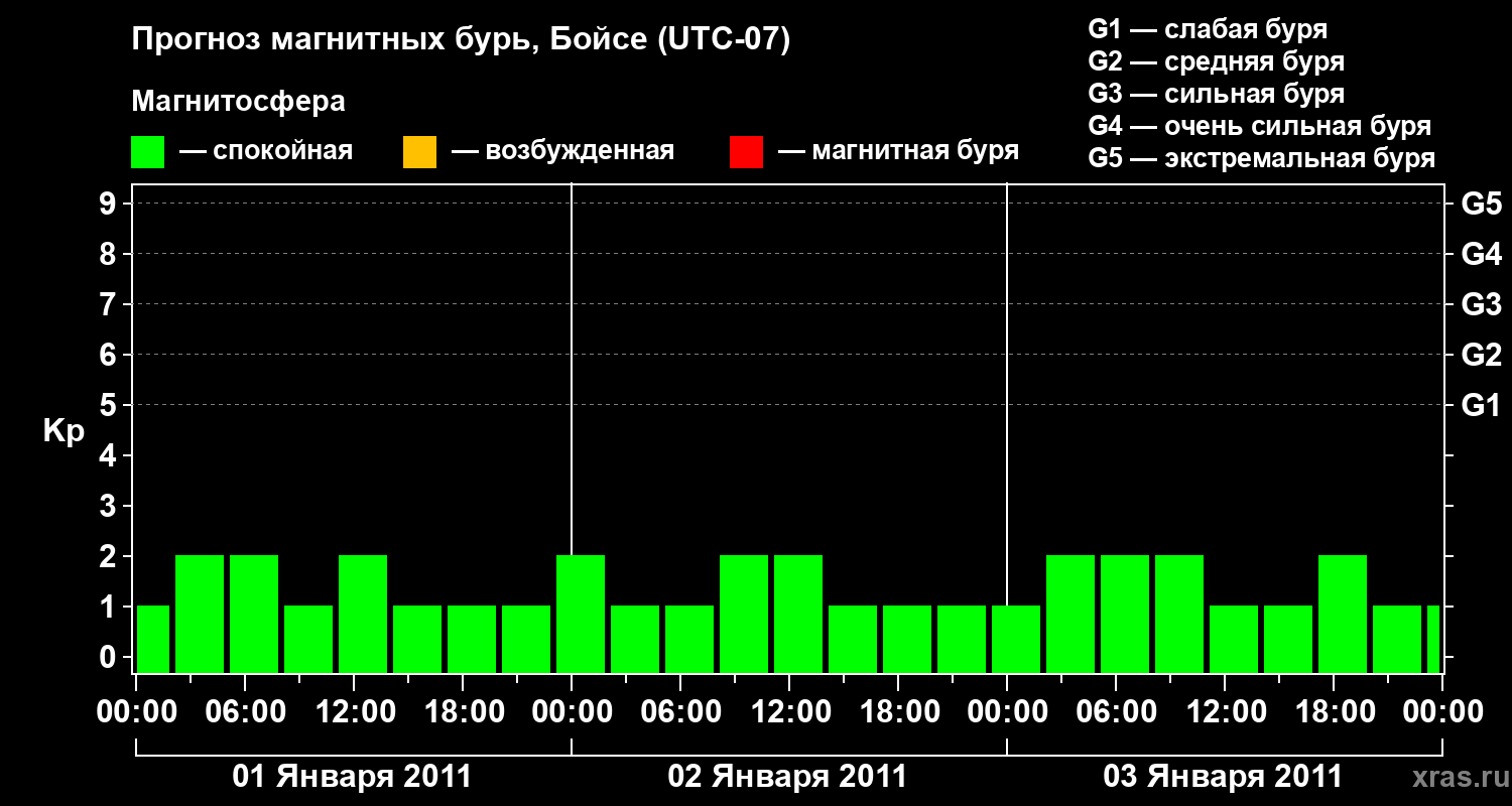 Прогноз магнитных бурь в Бойсе на 1 января 2011 года