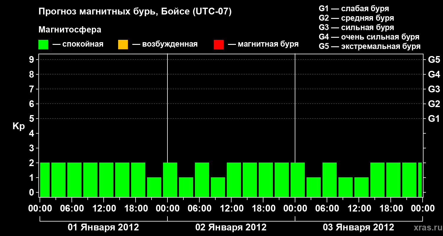Прогноз магнитных бурь в Бойсе на 1 января 2012 года