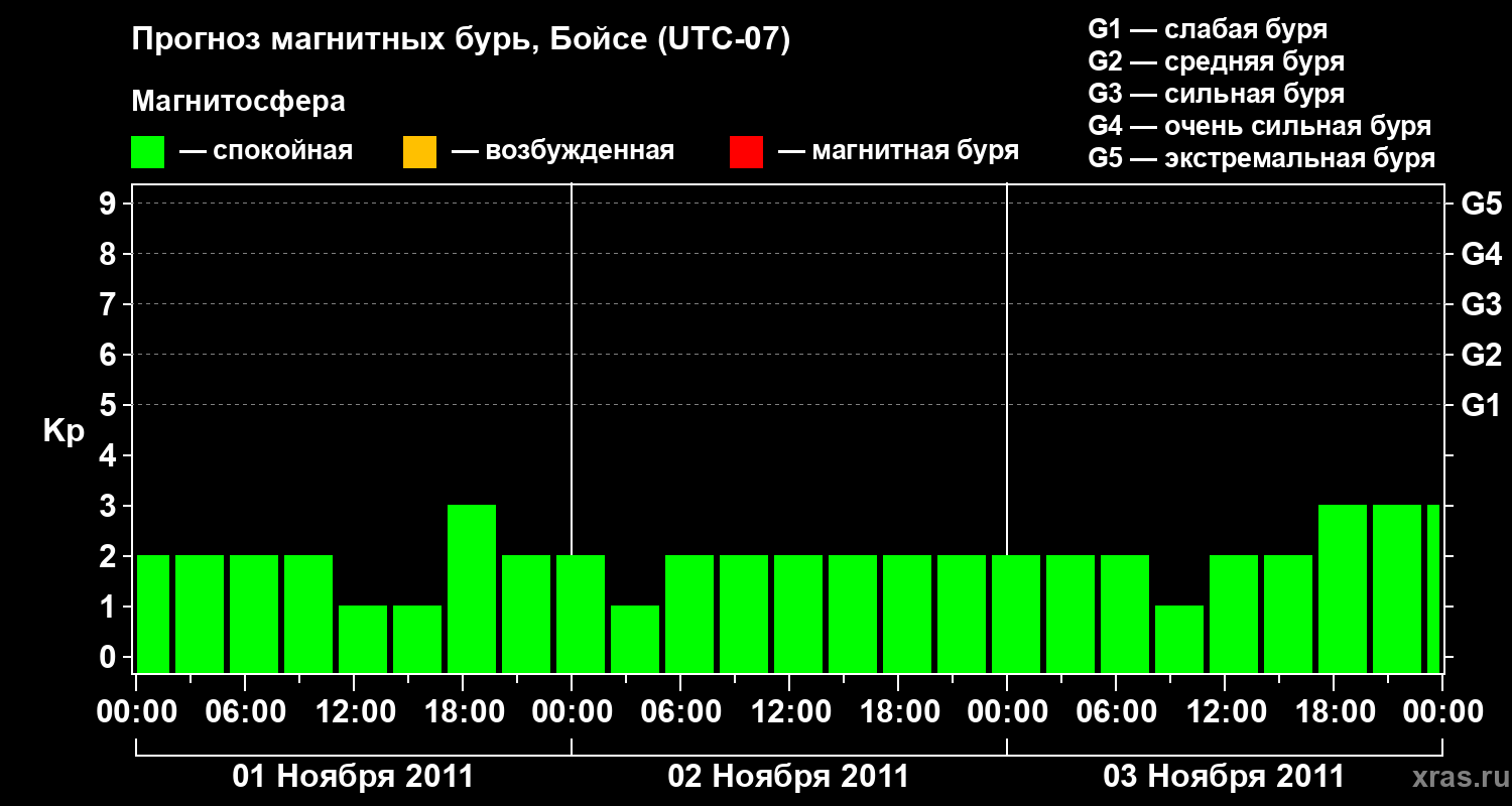 Прогноз магнитных бурь в Бойсе — 1 ноября 2011 года