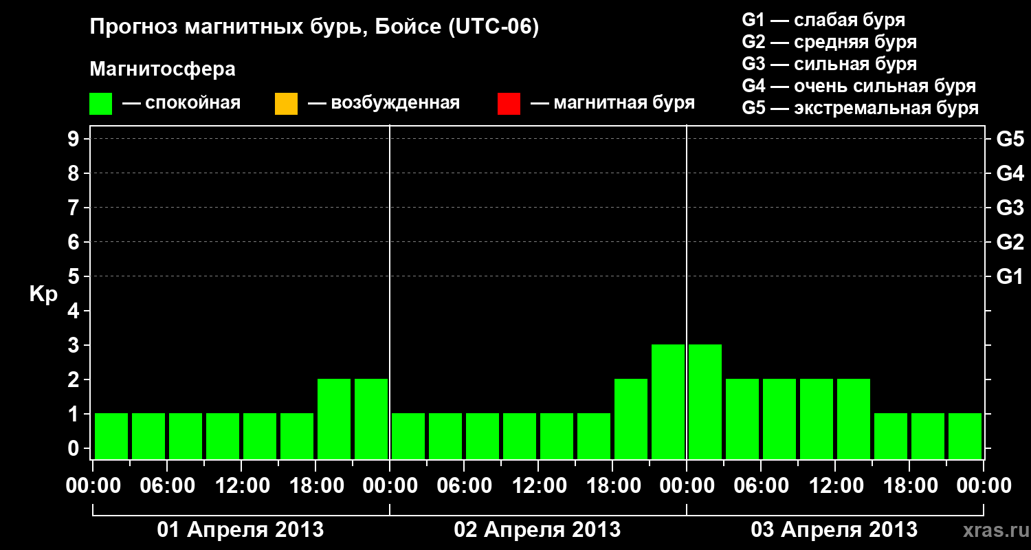 Прогноз магнитных бурь в Бойсе на 1 апреля 2013 года