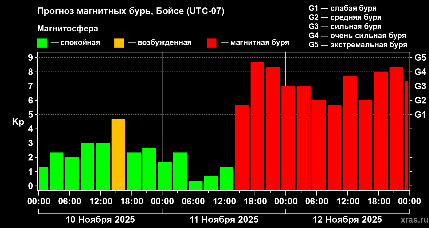 Прогноз магнитных бурь в Бойсе — 10 ноября 2025 года