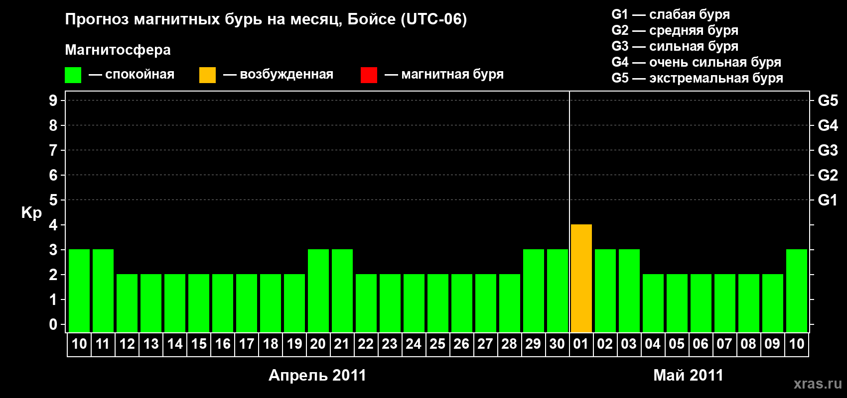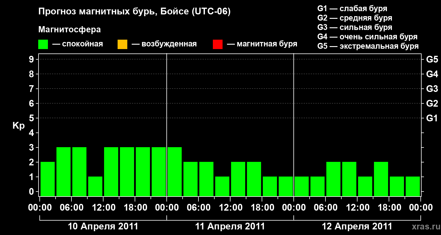 Прогноз магнитных бурь в Бойсе на 10 апреля 2011 года