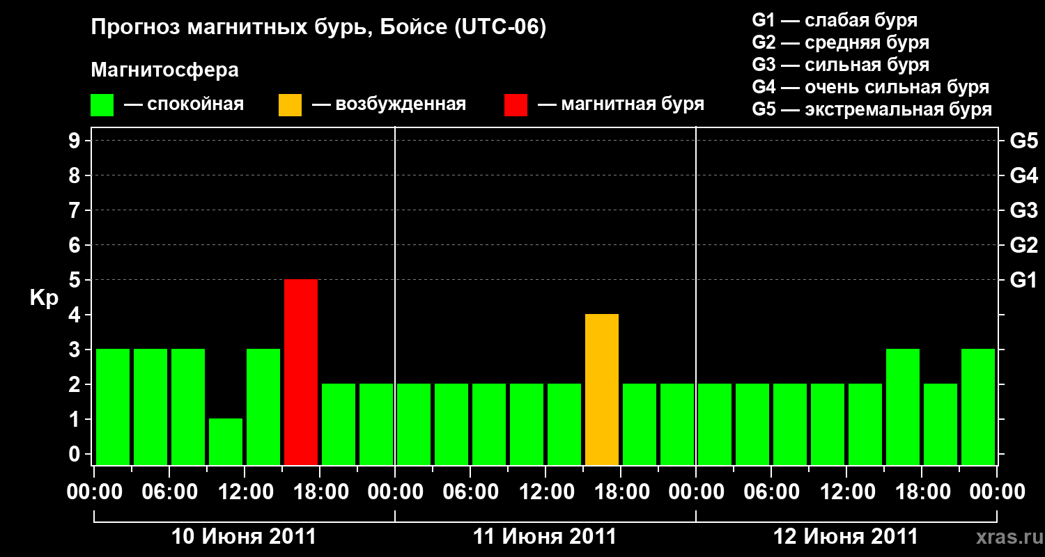 Прогноз магнитных бурь в Бойсе на 10 июня 2011 года