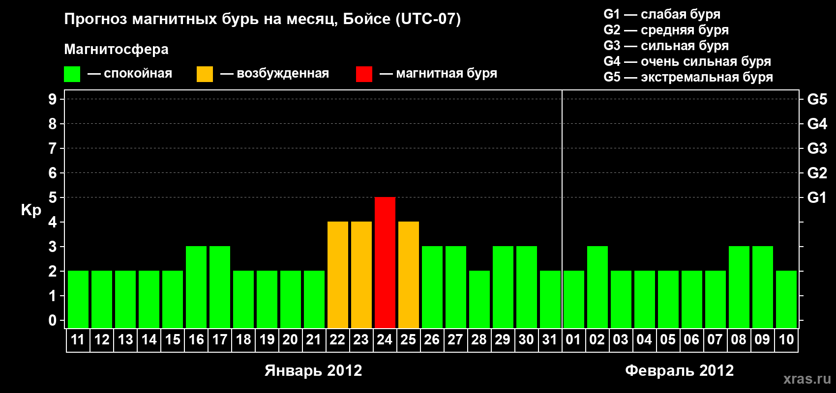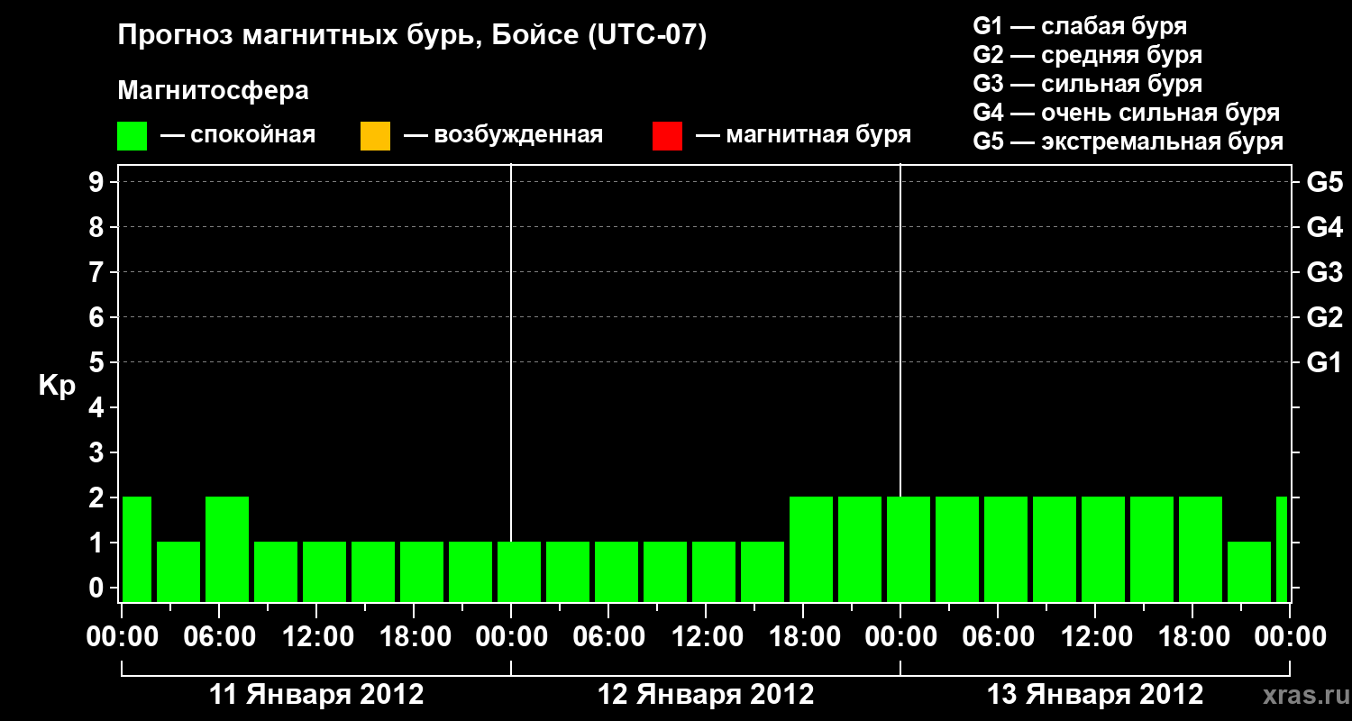 Прогноз магнитных бурь в Бойсе — 11 января 2012 года