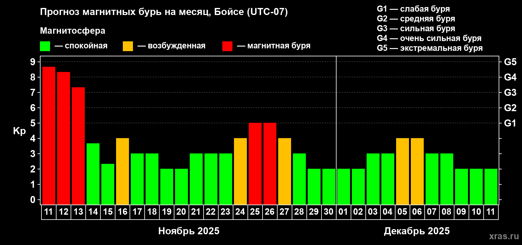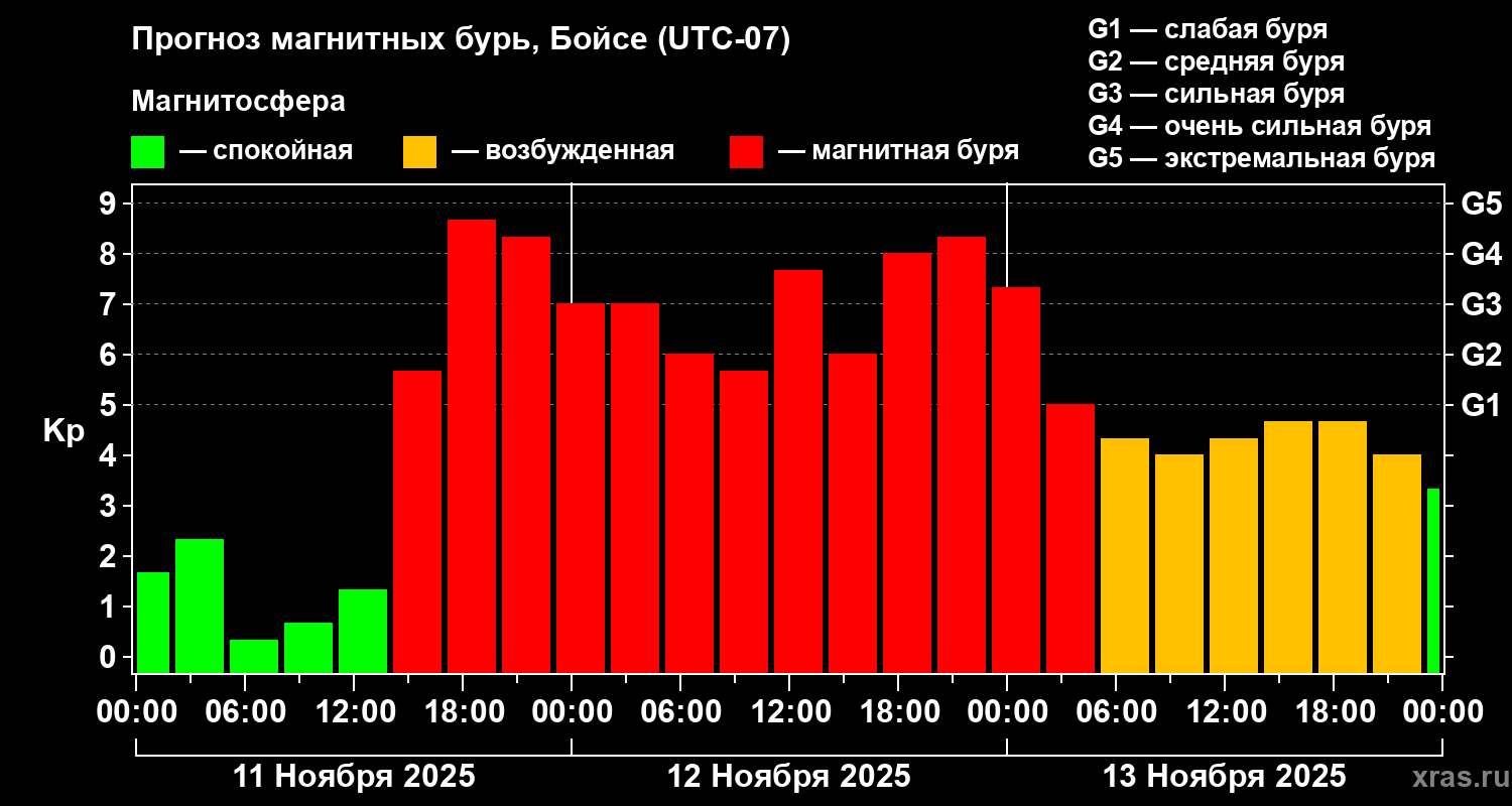 Прогноз магнитных бурь в Бойсе — 11 ноября 2025 года