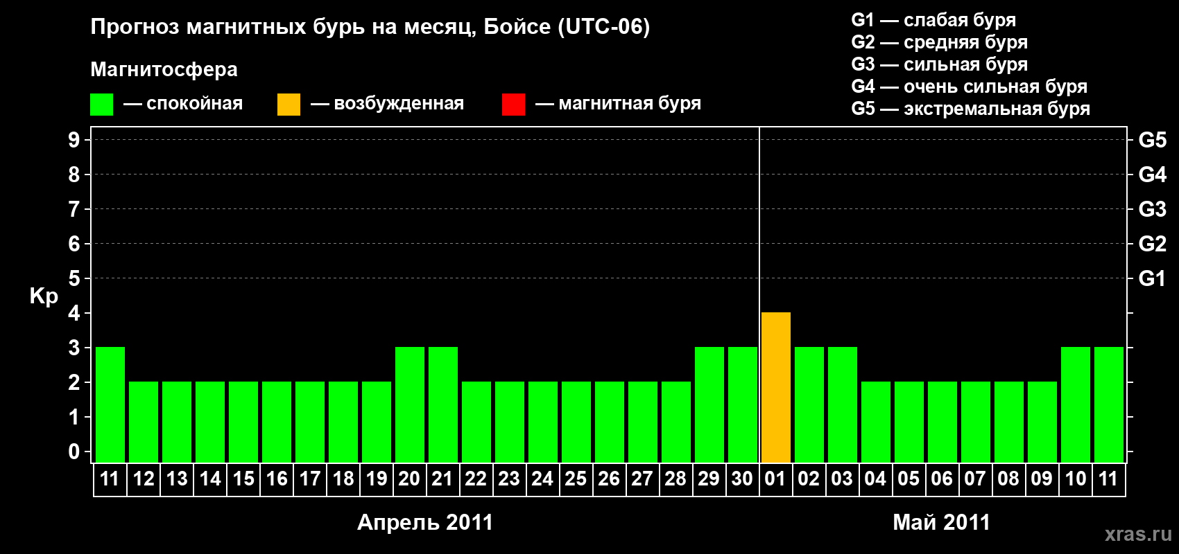 Прогноз магнитных бурь в Бойсе на 11 апреля 2011 года