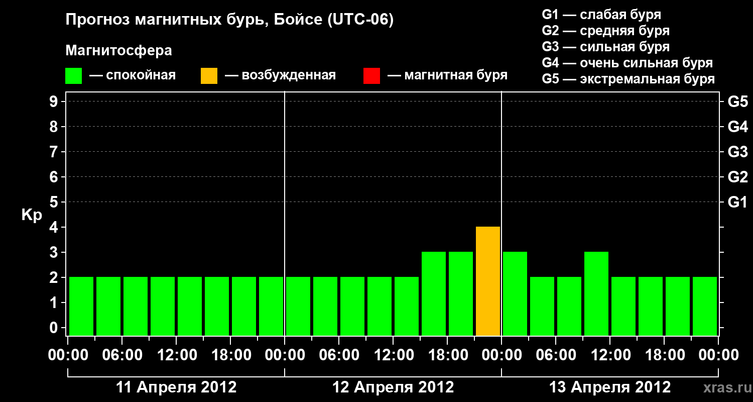 Прогноз магнитных бурь в Бойсе на 11 апреля 2012 года