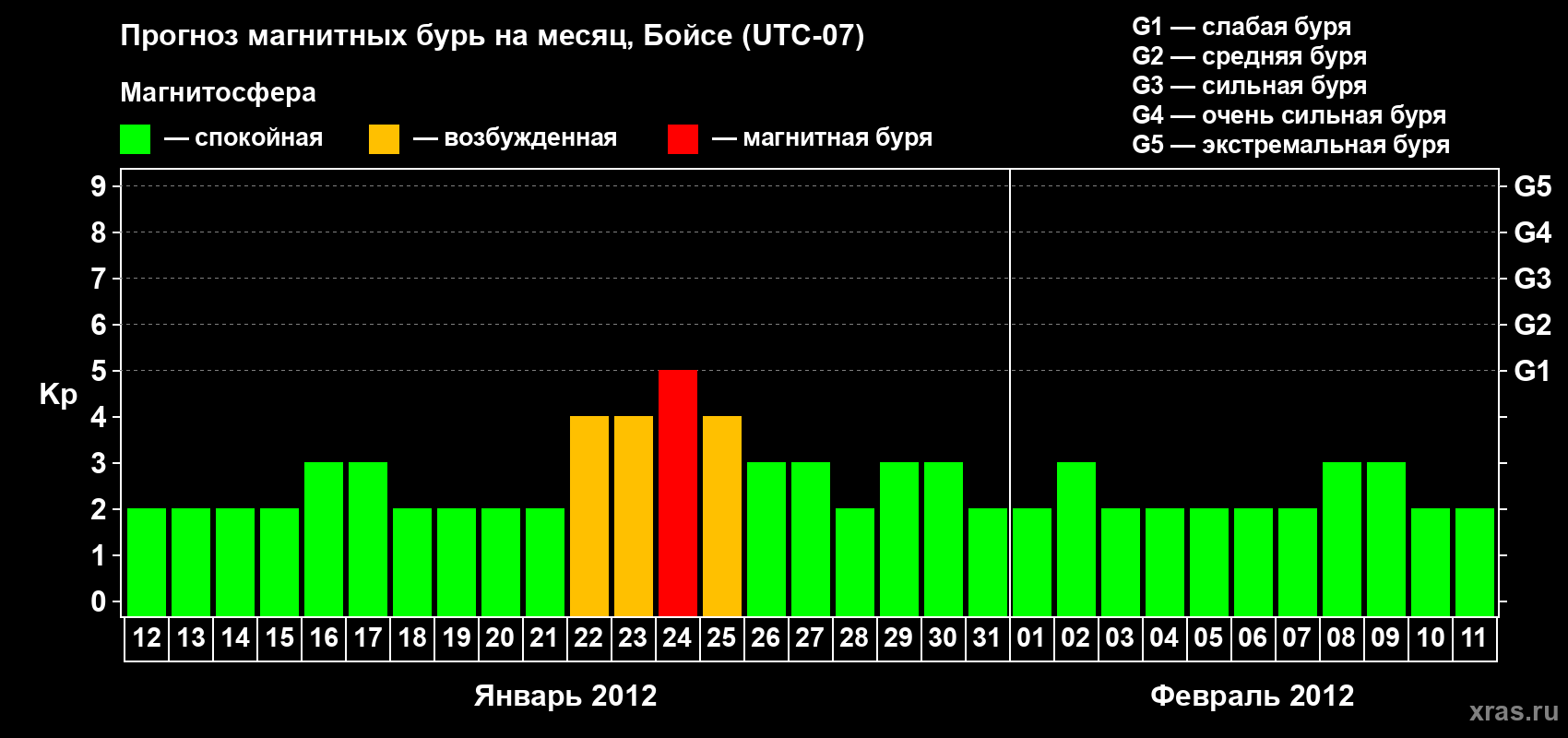 Прогноз магнитных бурь в Бойсе на 12 января 2012 года