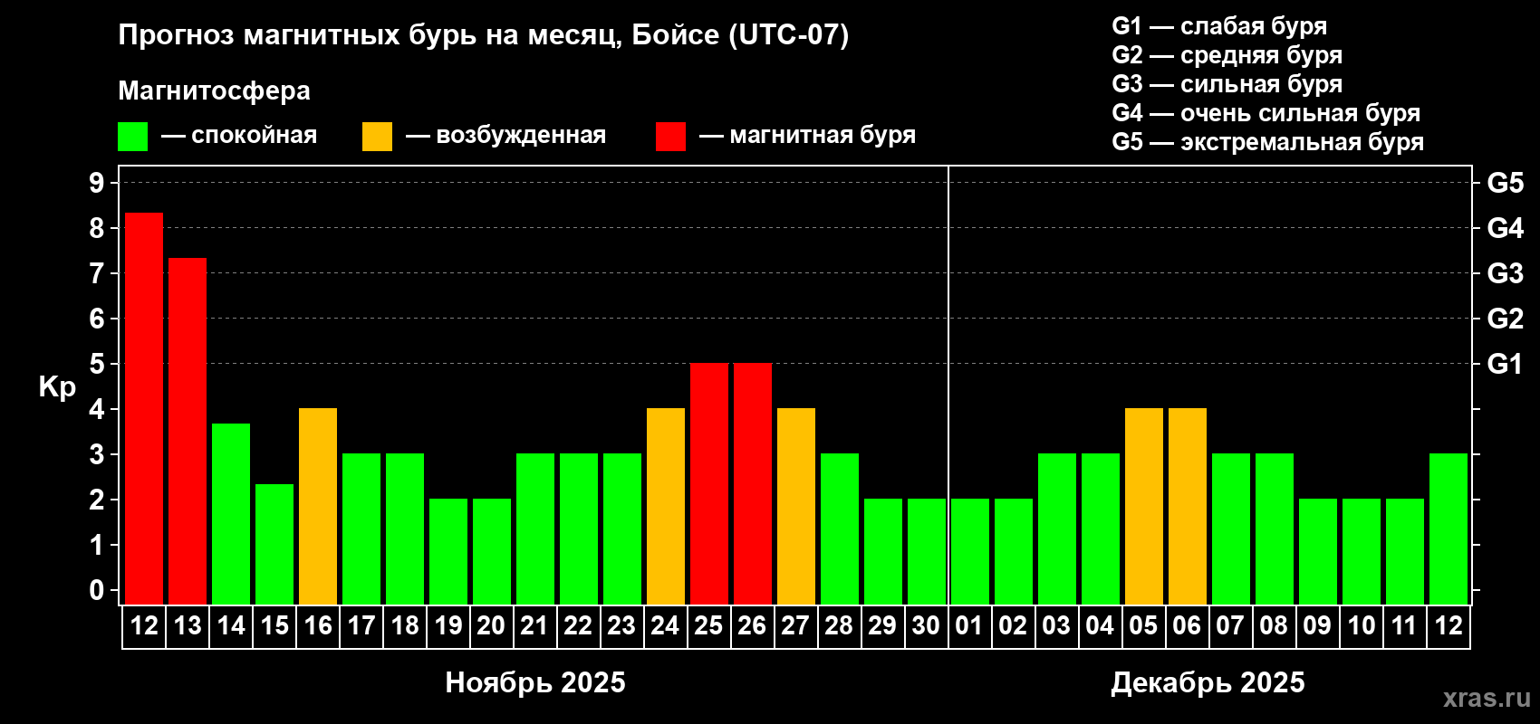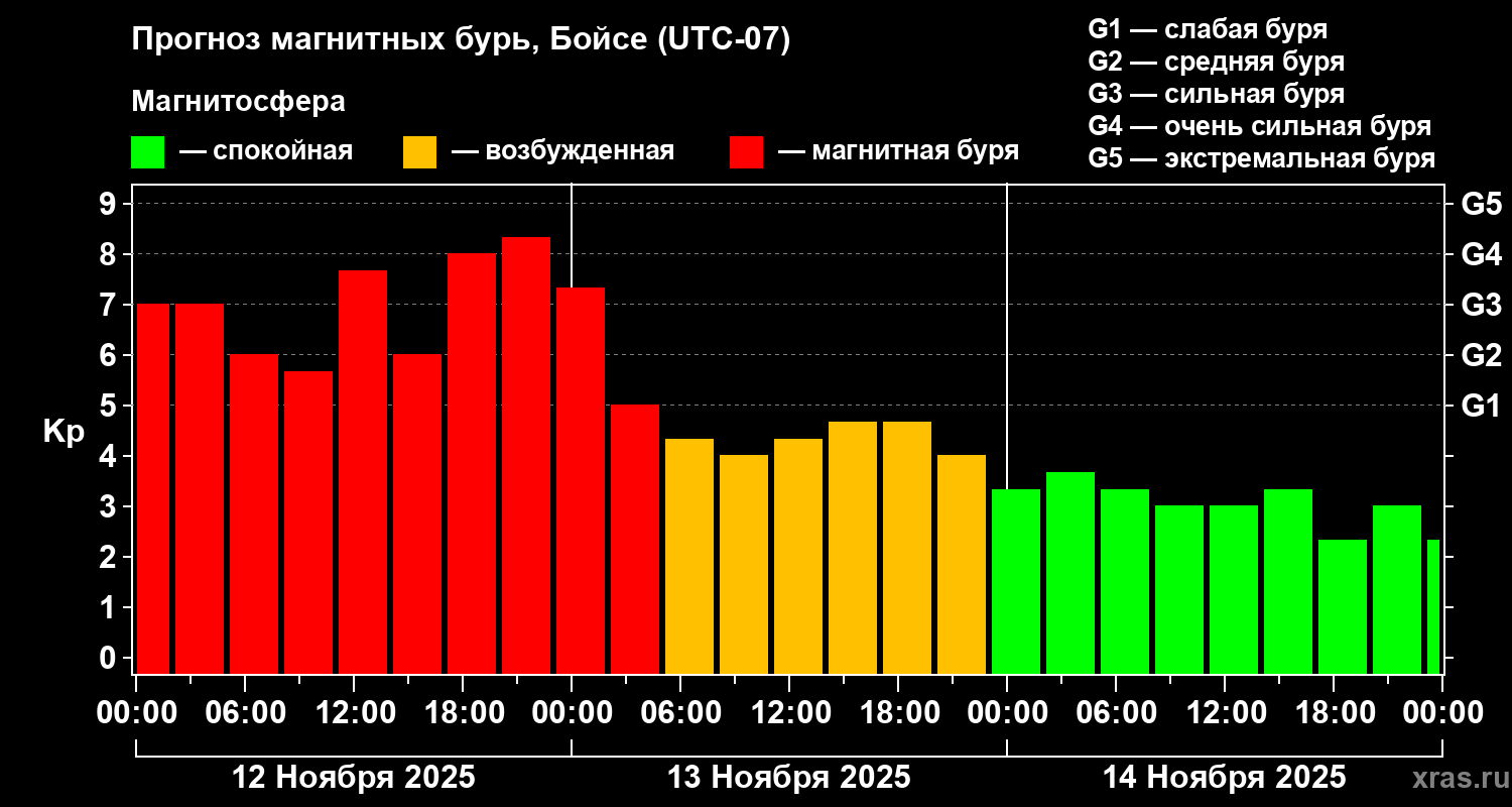 Прогноз магнитных бурь в Бойсе — 12 ноября 2025 года