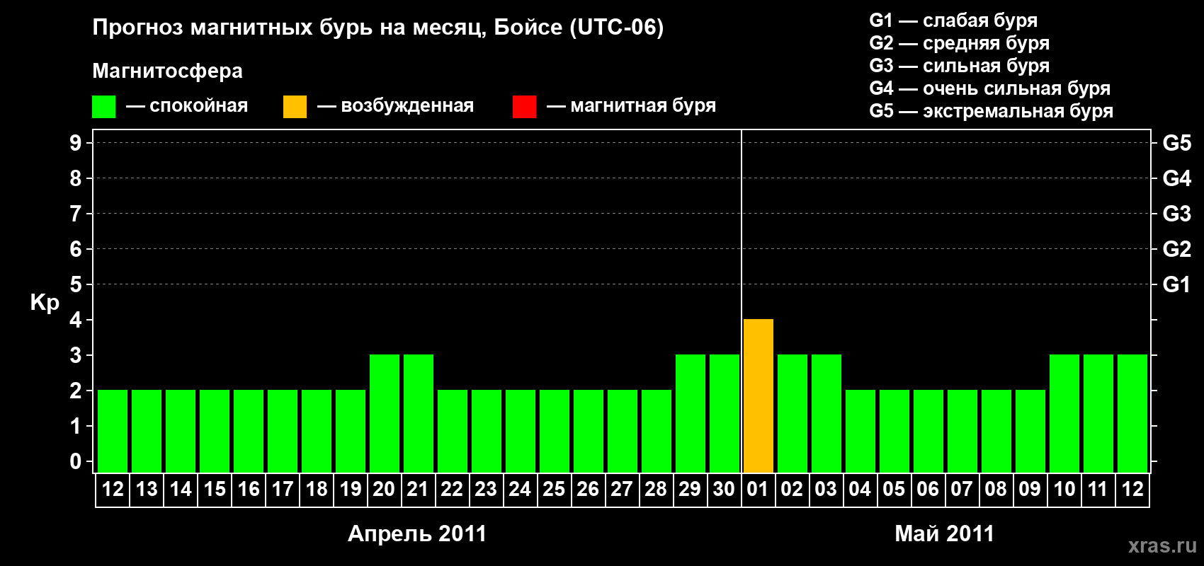 Прогноз магнитных бурь в Бойсе на 12 апреля 2011 года