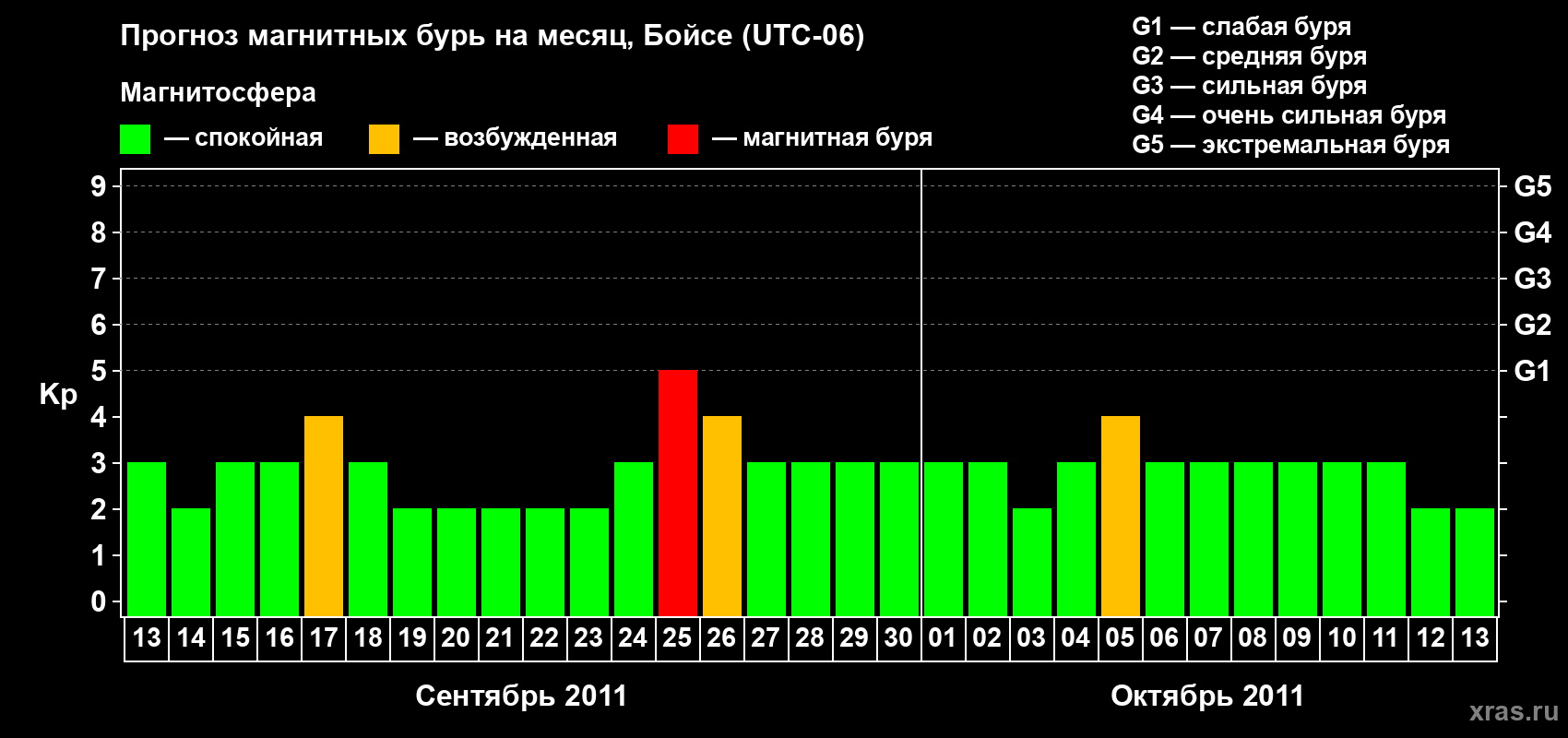 Прогноз магнитных бурь в Бойсе — 13 сентября 2011 года