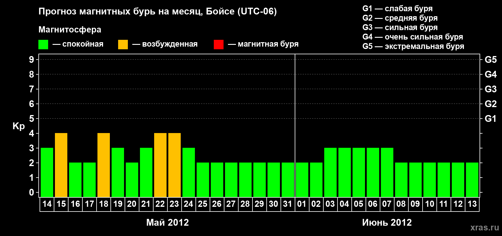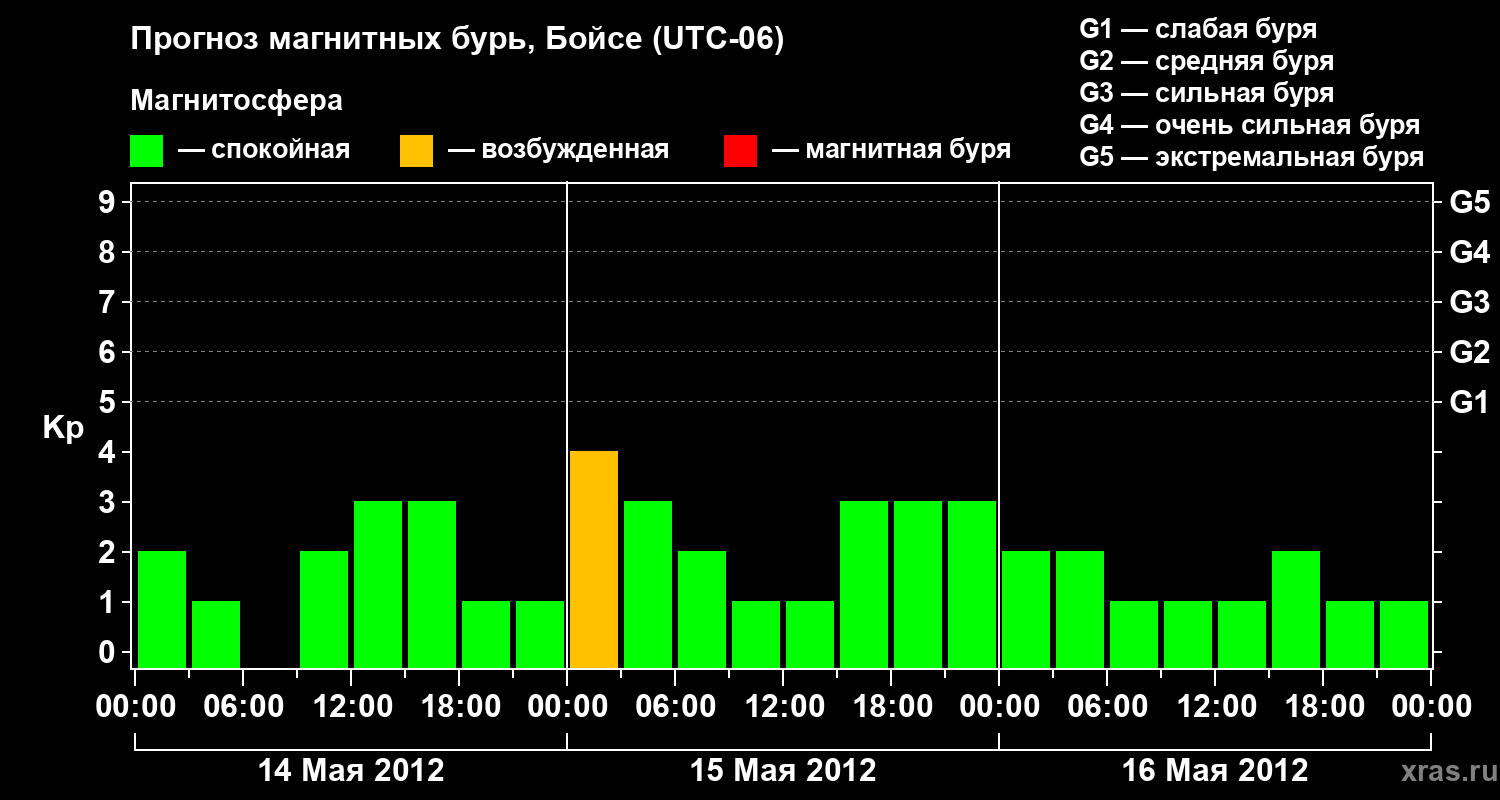 Прогноз магнитных бурь в Бойсе на 14 мая 2012 года