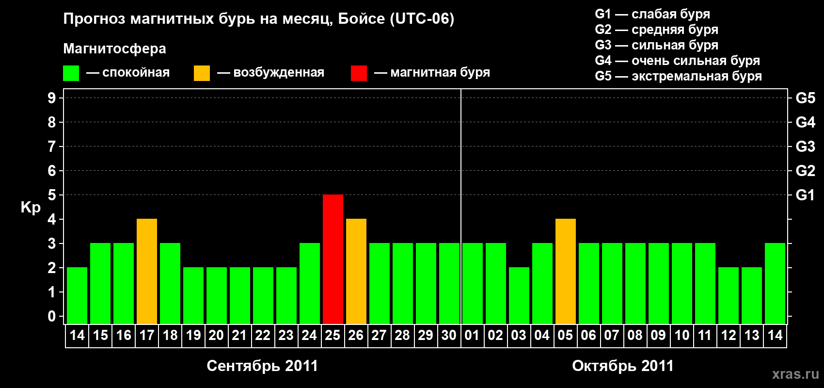 Прогноз магнитных бурь в Бойсе на 14 сентября 2011 года