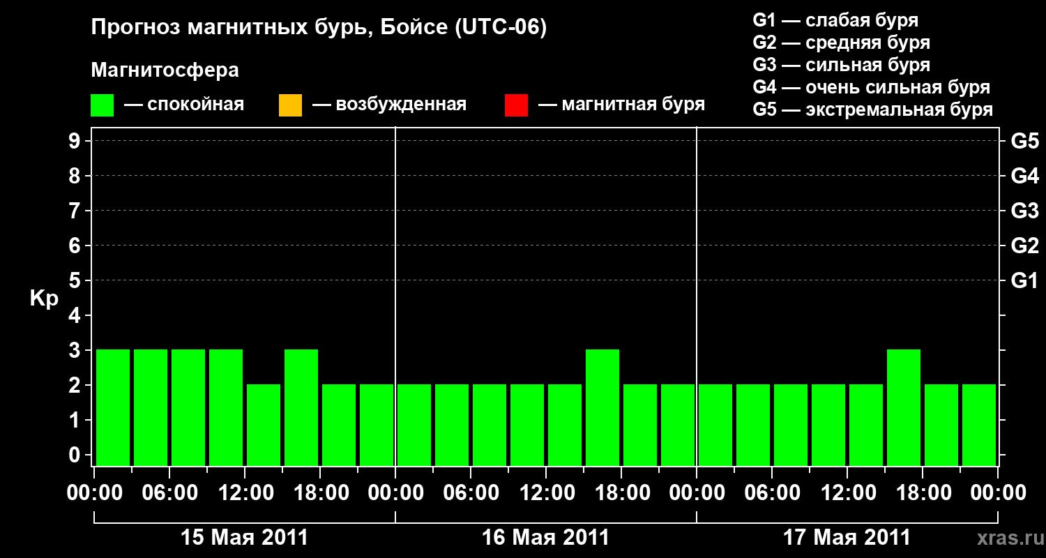 Прогноз магнитных бурь в Бойсе на 15 мая 2011 года