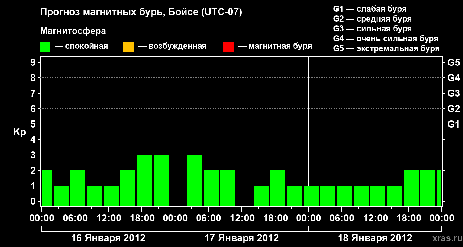Прогноз магнитных бурь в Бойсе на 16 января 2012 года