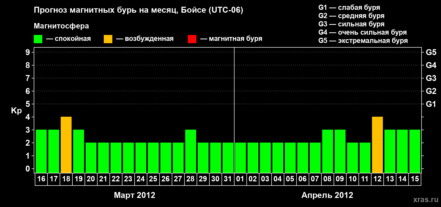 Прогноз магнитных бурь в Бойсе на 16 марта 2012 года