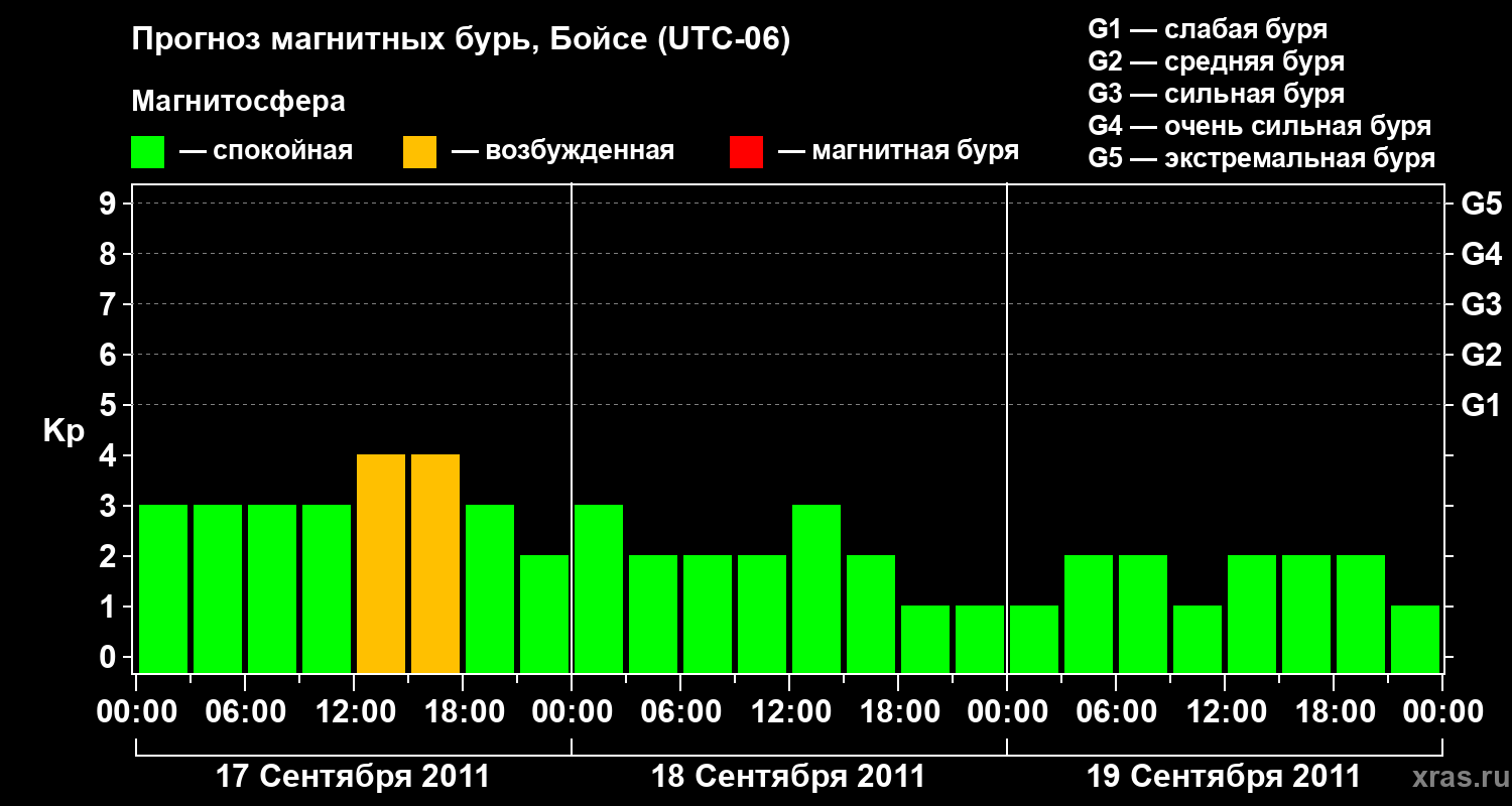 Прогноз магнитных бурь в Бойсе на 17 сентября 2011 года