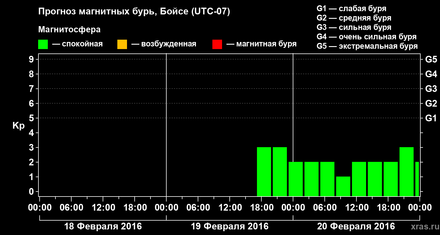 Прогноз магнитных бурь в Бойсе на 18 февраля 2016 года