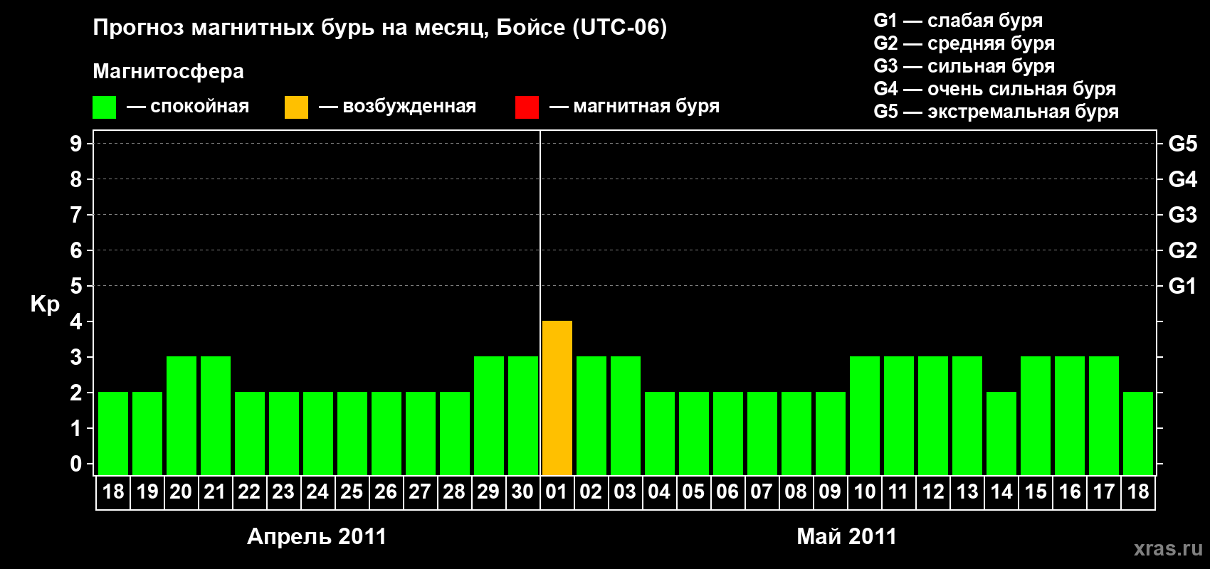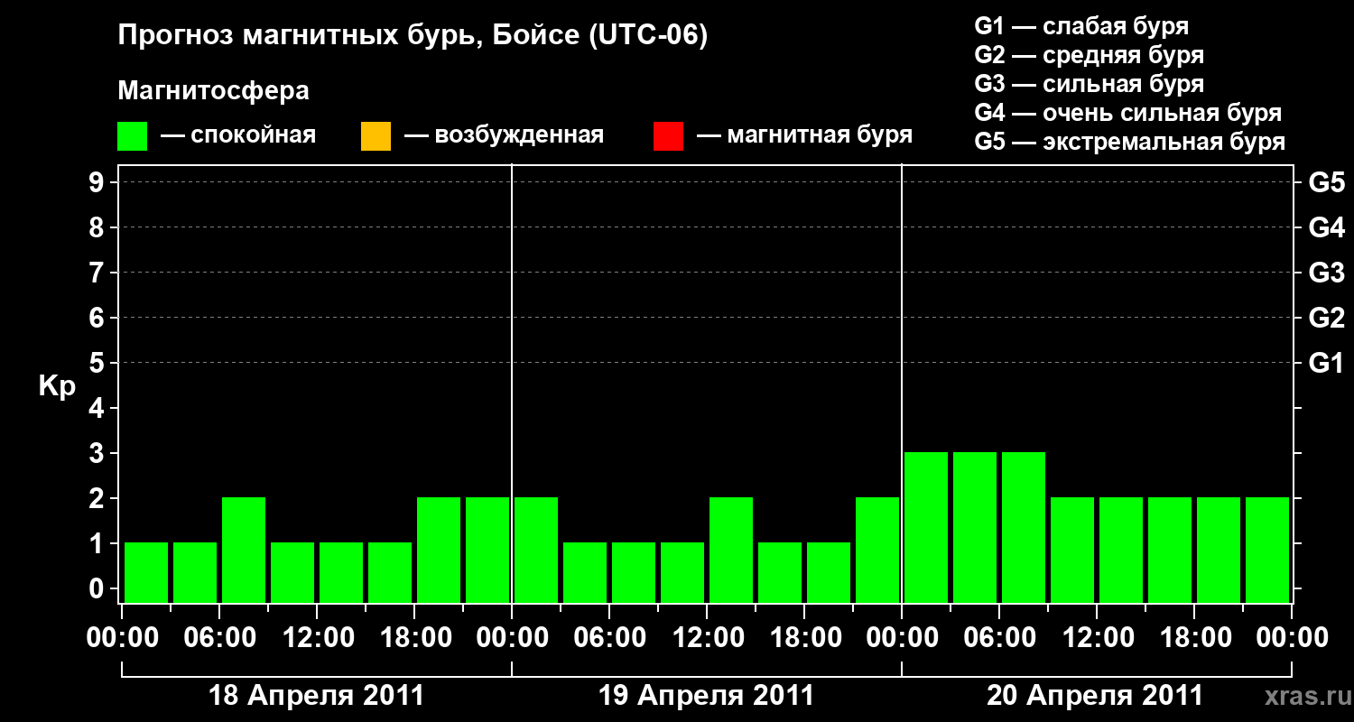 Прогноз магнитных бурь в Бойсе на 18 апреля 2011 года
