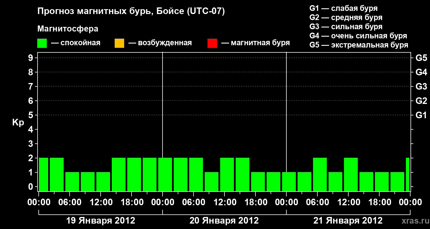 Прогноз магнитных бурь в Бойсе на 19 января 2012 года
