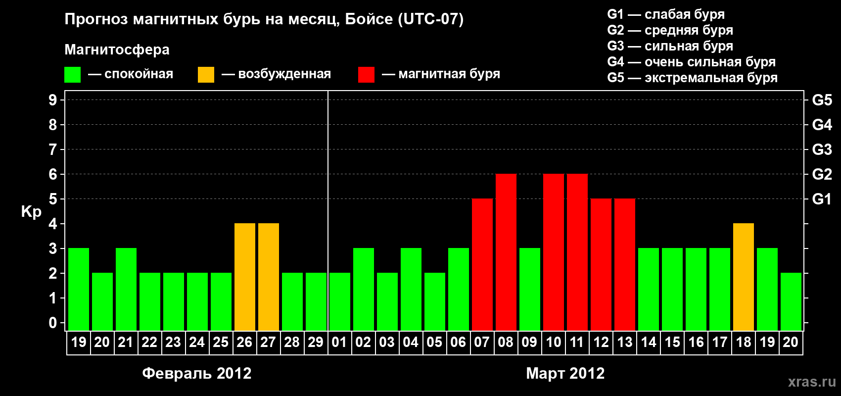 Прогноз магнитных бурь в Бойсе — 19 февраля 2012 года