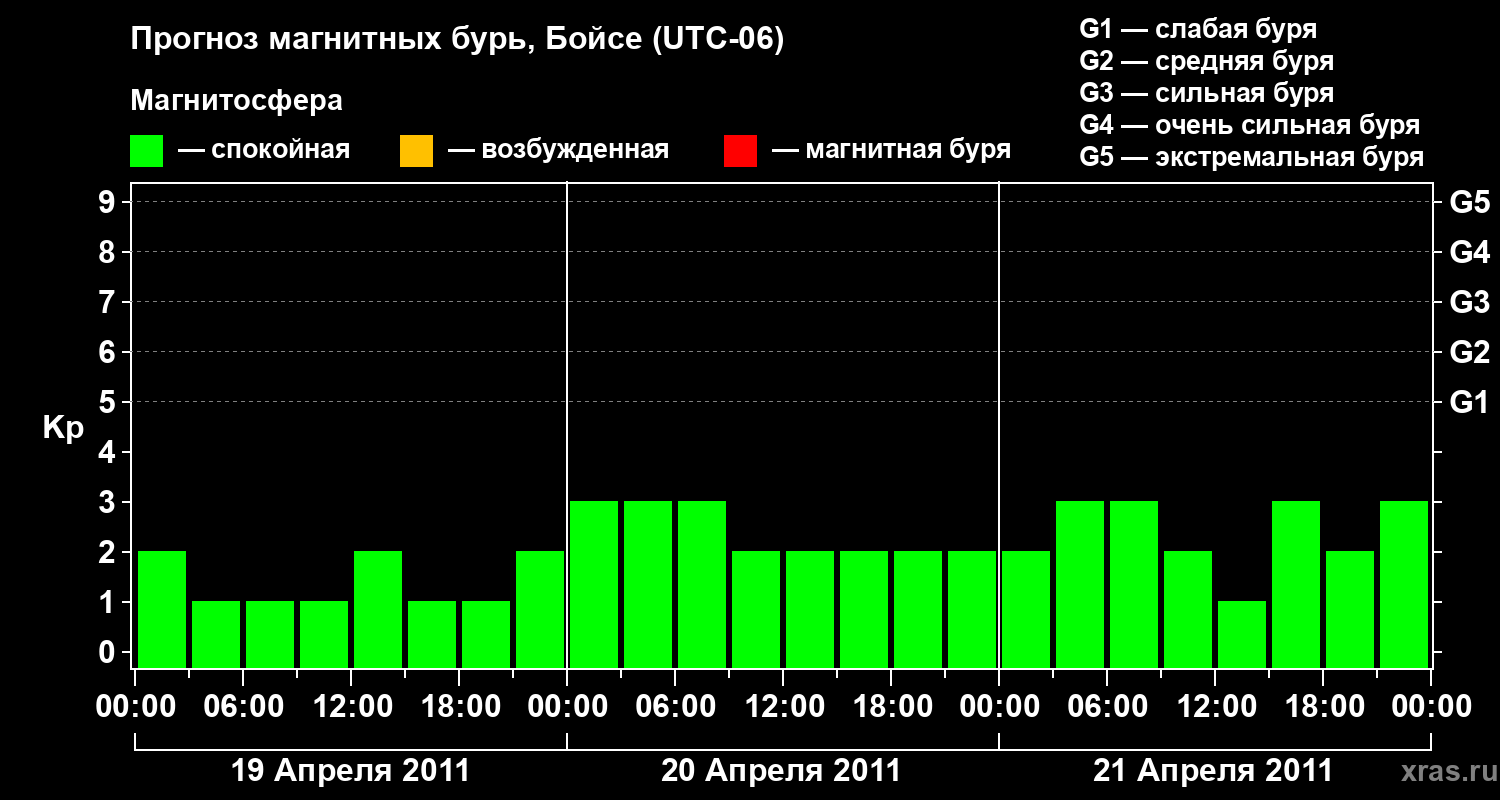 Прогноз магнитных бурь в Бойсе на 19 апреля 2011 года