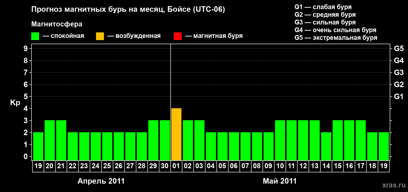 Прогноз магнитных бурь в Бойсе — 19 апреля 2011 года