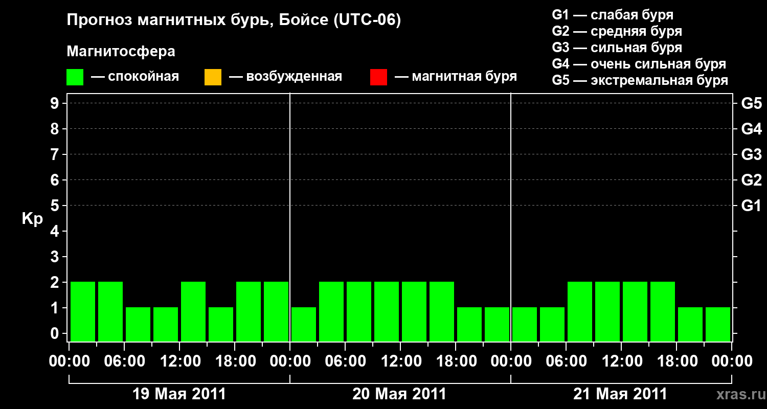 Прогноз магнитных бурь в Бойсе на 19 мая 2011 года
