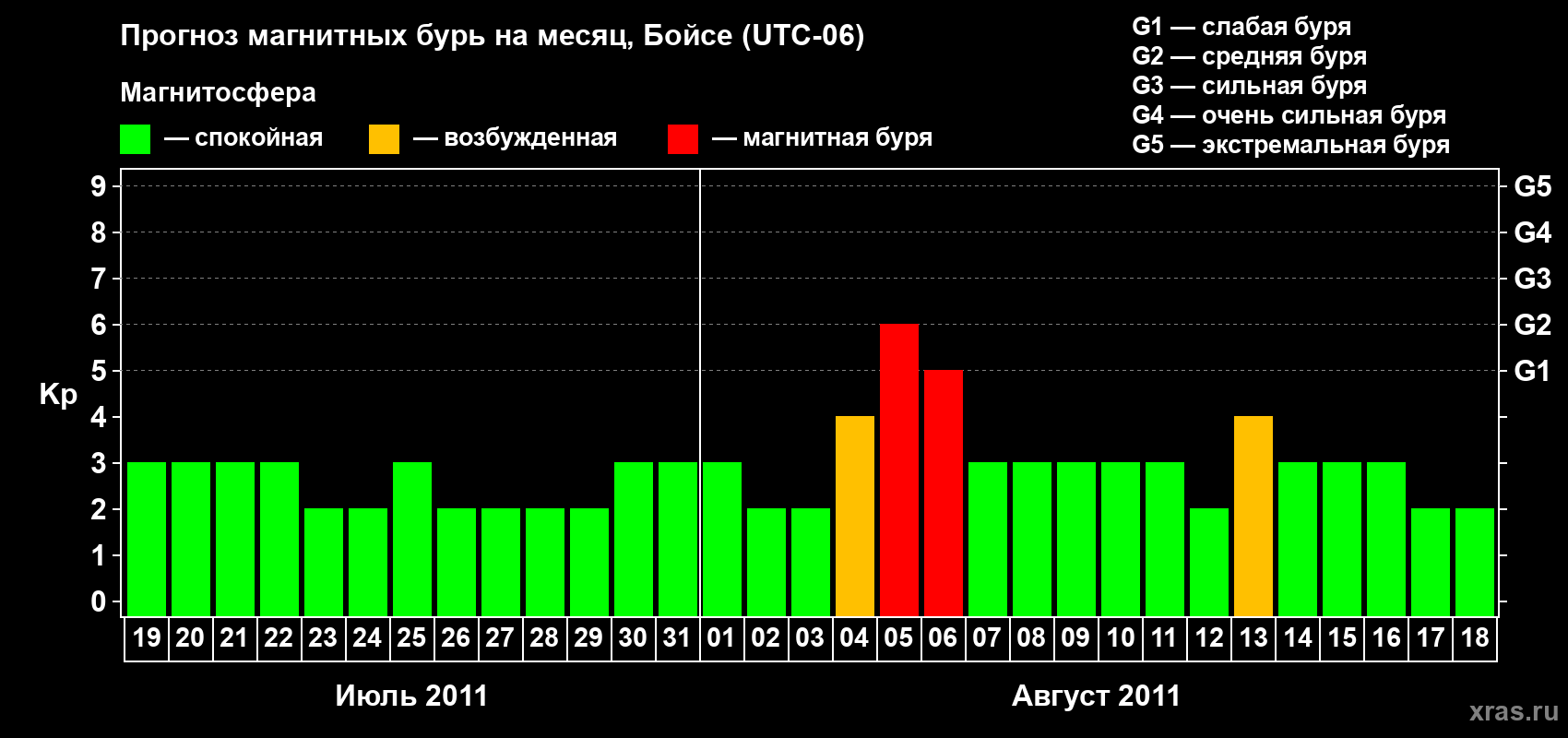 Прогноз магнитных бурь в Бойсе — 19 июля 2011 года