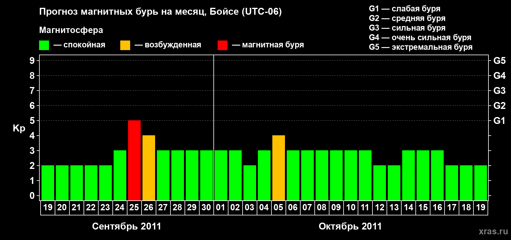 Прогноз магнитных бурь в Бойсе — 19 сентября 2011 года