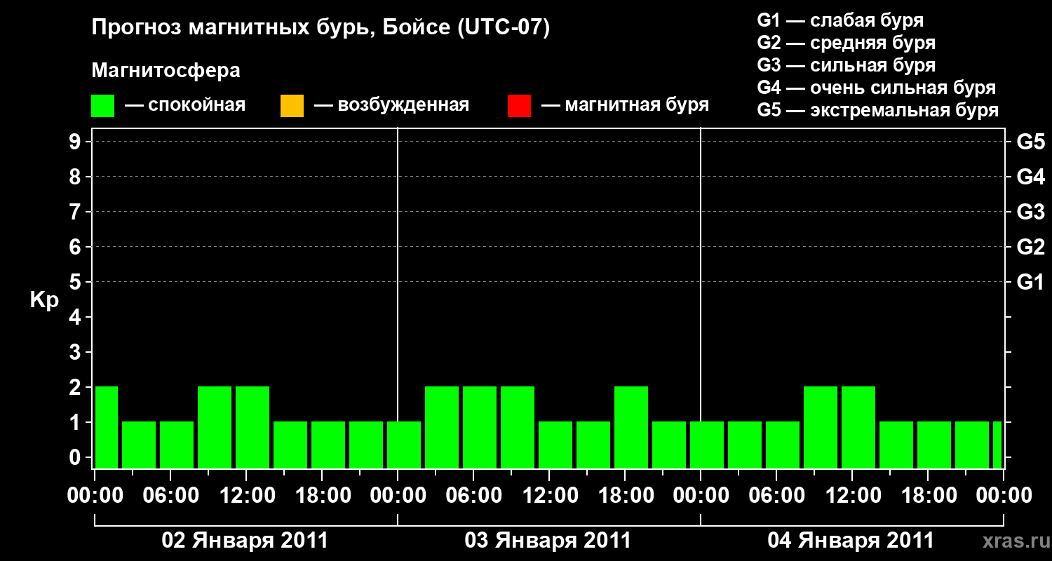 Прогноз магнитных бурь в Бойсе на 2 января 2011 года