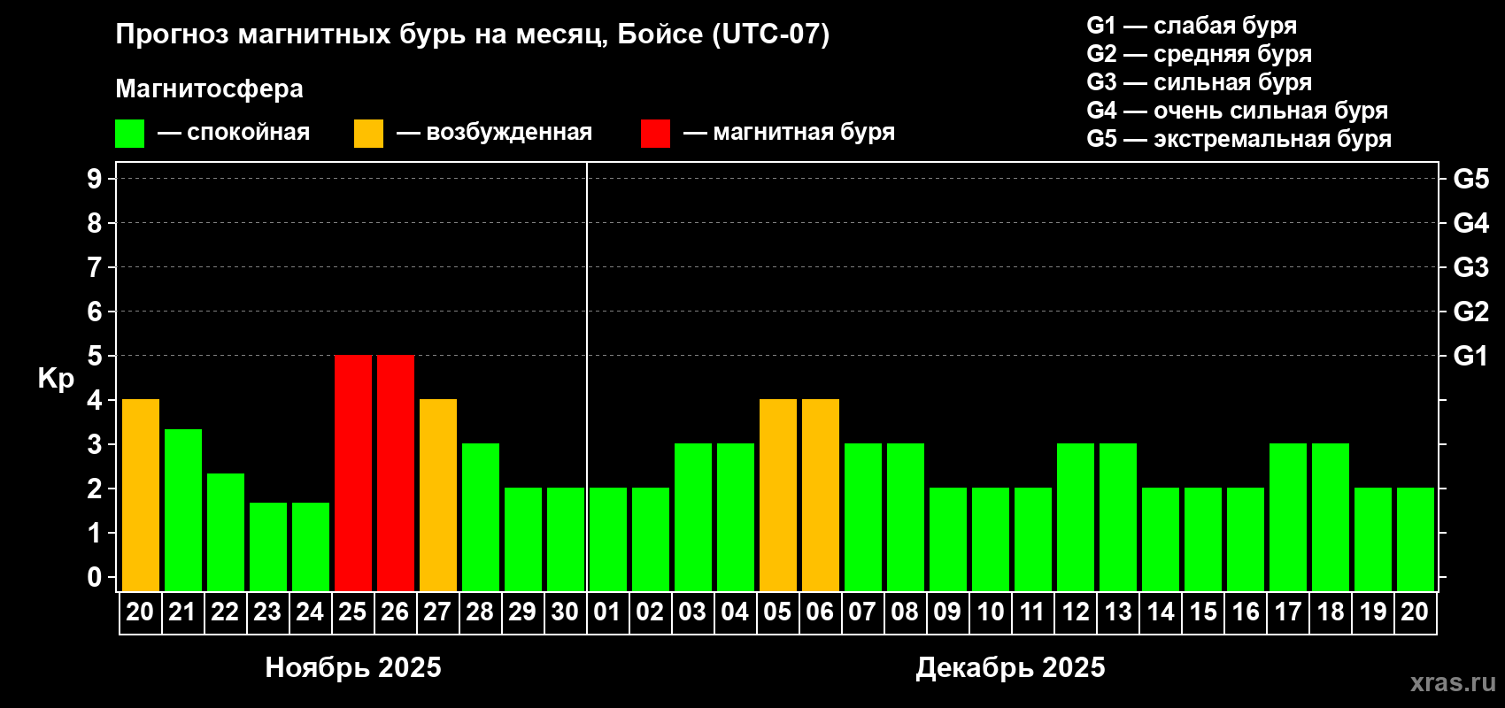 Прогноз магнитных бурь в Бойсе — 20 ноября 2025 года