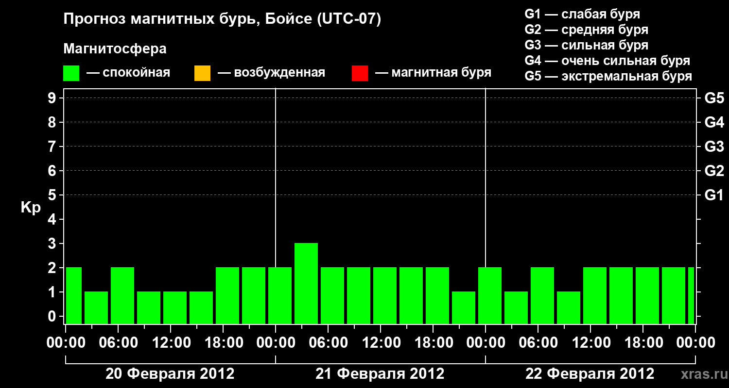Прогноз магнитных бурь в Бойсе на 20 февраля 2012 года