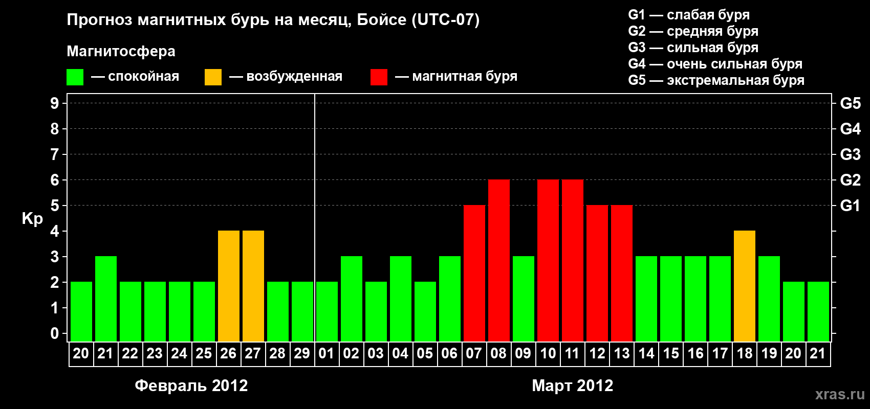 Прогноз магнитных бурь в Бойсе — 20 февраля 2012 года