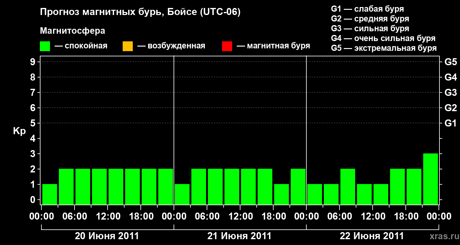 Прогноз магнитных бурь в Бойсе на 20 июня 2011 года