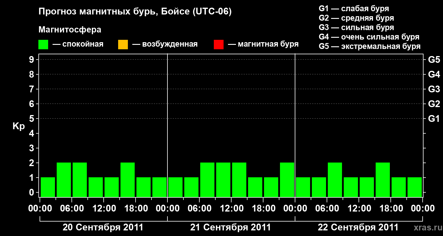 Прогноз магнитных бурь в Бойсе на 20 сентября 2011 года