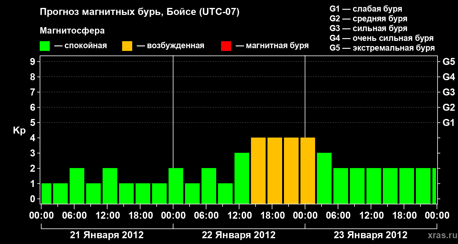 Прогноз магнитных бурь в Бойсе на 21 января 2012 года