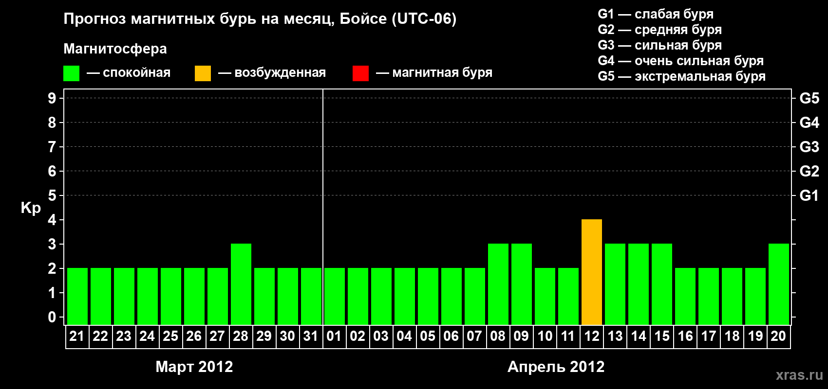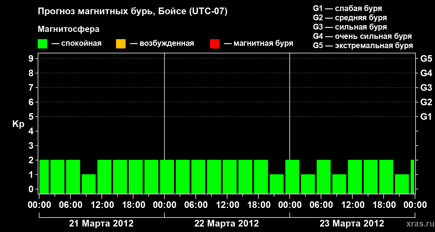 Прогноз магнитных бурь в Бойсе на 21 марта 2012 года